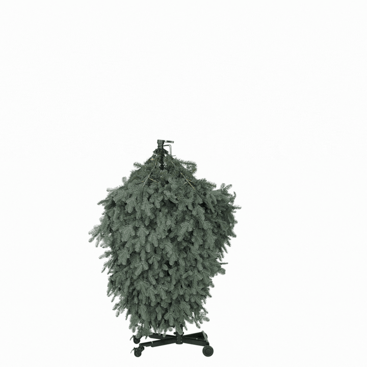 Effortlessly roll the tree into place on its wheeled base, lock it securely, flip it upright, and attach the lightweight top—all without any heavy lifting.